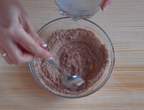 - Окремо готуємо глазур. Змішуємо какао разом з пропущеної через сито цукровою пудрою.