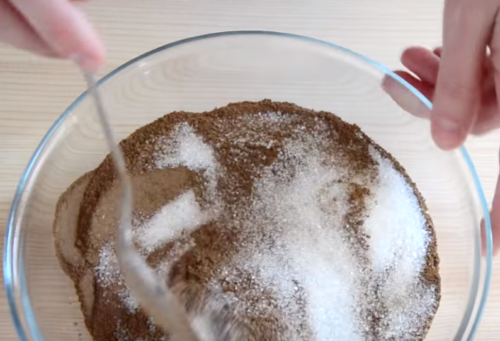 - Робимо начинку. Перемішуємо цукор з корицею.