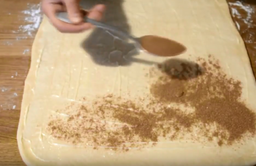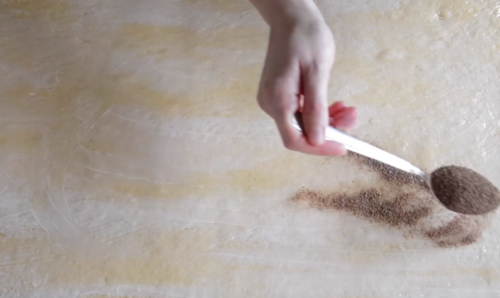 - Змащуємо розтопленим маслом, щедро посипаємо корицею, коричневим цукром.