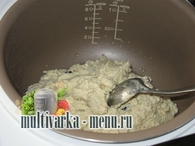 Підготуємо нашу диво – помічницю мультиварку. У ємність ложкою викладаємо готове тісто.