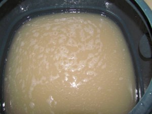 Цукор в обов’язковому порядку необхідно розчинити, інакше він осяде і не зможе брати участь в результаті бродіння, що негативно позначиться на якості самогонного напою. Потім дріжджі заливаються водою температури 25-30°. Необхідно додати 2-3 ложки цукрового піску. Через короткий час дріжджі оживуть і змішаються з іншими інгредієнтами.