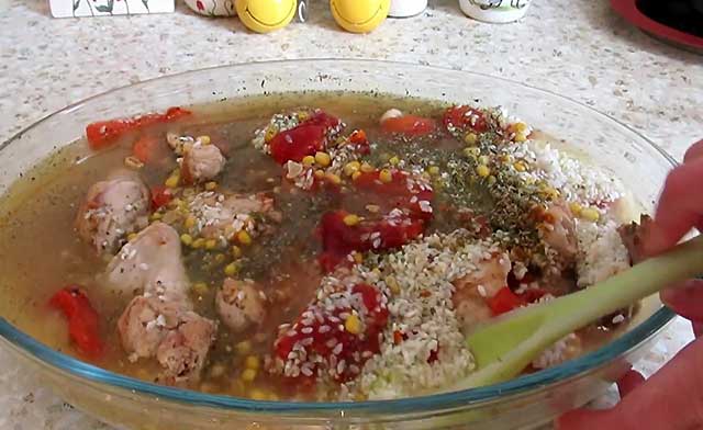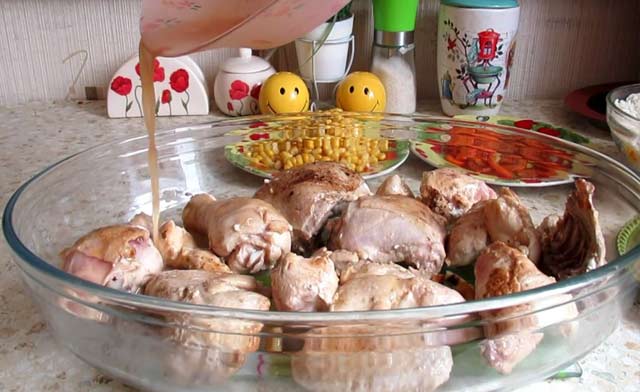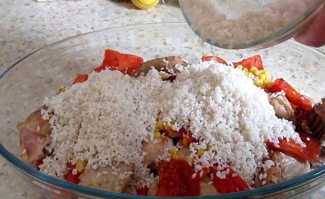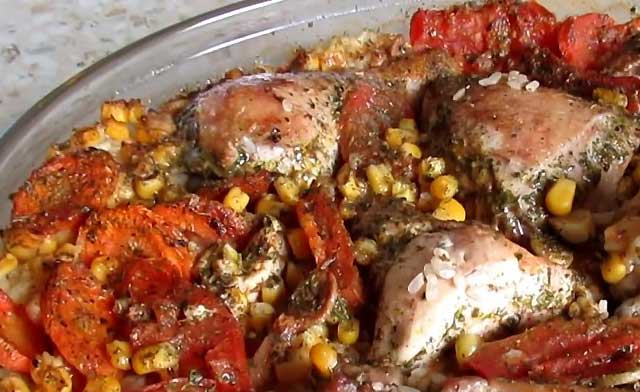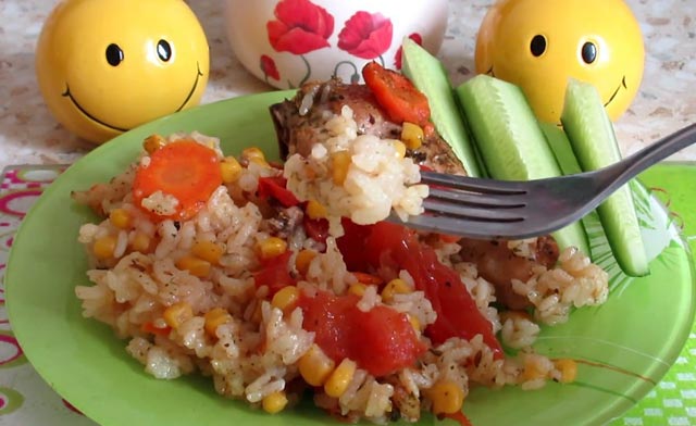 Смачна курка на подушці з рису в духовці — рецепт з кукурудзою
