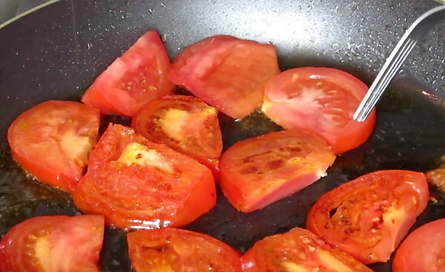 У цьому ж маслі обсмажуємо моркву і томати окремо.