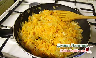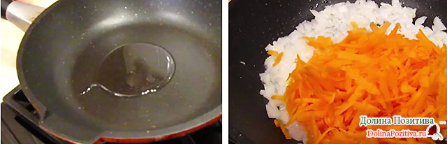 У сковороду з розігрітою олією додати цибулю і моркву. Обсмажити до напівготовності.
