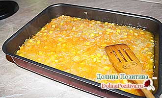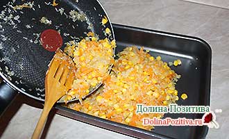 У спеціальну глибоку посуд для запікання викладаємо отриману суміш. Рівномірно розподіляємо овочеву суміш з посуді.