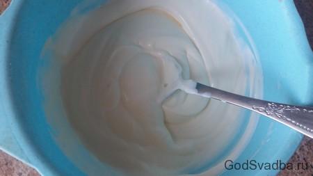 Примітка. Якщо майонез насичений, густий, то краще візьміть 13 ложок сметани і 7 майонезу, щоб тісто не вийшло кислуватим. Сметана підійде будь-якої жирності, але краще узяти 20%.