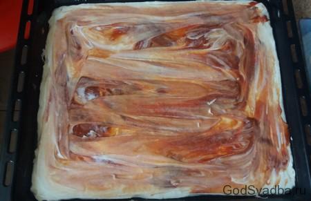 Крок 5. Тісто викладаємо на деко, намагаємося розмазати його по всій поверхні рівномірно.
