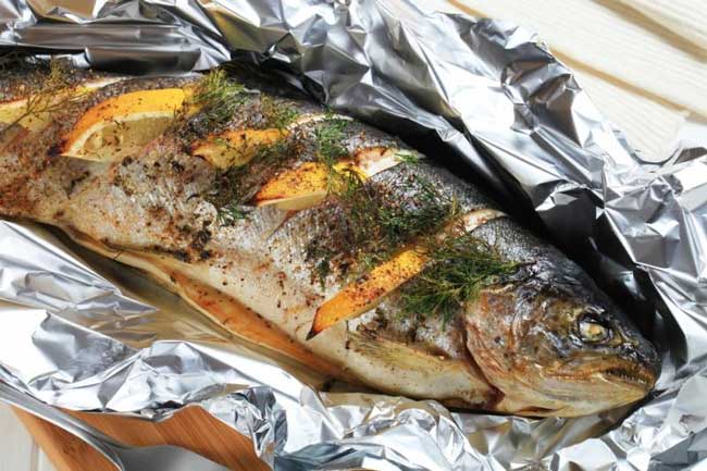 • Рибу щільно загортають у фольгу. Не повинно бути ніяких просвітів і щілин.