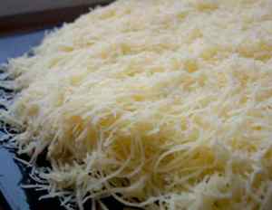 готується і з сиром. Якщо ви не добули твердий сир, його можна імітувати. Шматочок звичайного сиру без обгортки кладемо на тарілку і заморожуємо. Потім виймаємо, даємо відтанути і використовуємо в своє задоволення. Зайва волога після заморозки випарується, і ми отримаємо рівномірно підсушений (але не сухий) сир твердий.