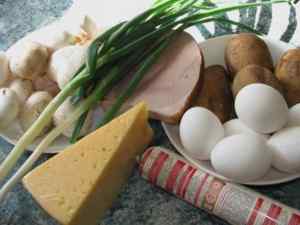 - шинка або варена ковбаса (можна використовувати навіть сосиски або сардельки);