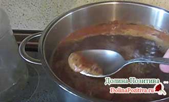 Каструлю ставимо на вогонь, вміст доводимо до кипіння. Шумівку не випускаємо з рук, постійно знімаємо піну.