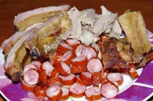 - по 200 грамів сирих свинячих і яловичих ребер