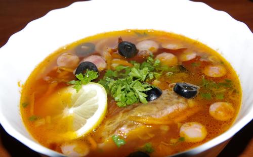 Перед подачею покладіть в тарілку колечко лимона, витиснувши з нього попередньо сік в суп. Навариста і густа солянка, яскрава і барвиста, з ароматом копченостей — я думаю, всі залишаться задоволеними.
