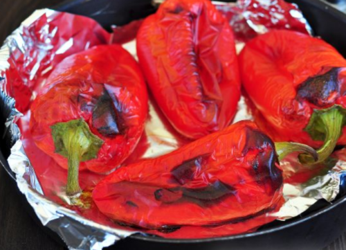 • Перець запечемо в духовці при температурі 200 градусів, треба, щоб на шкірі з’явилися легкі підпалини.