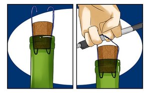 Якщо пропалювання пройде успішно, тоді через отримане отвір треба протягнути ту ж дріт, але з загином на кінці. Потягнути трохи назад, щоб загин зачепився за низ пробки. Потім додатково увігнати в отвір підходящий по товщині шматок гілки, щоб щільніше затиснути дріт, і плавним нерізким зусиллям постаратися витягнути винну закупорку.