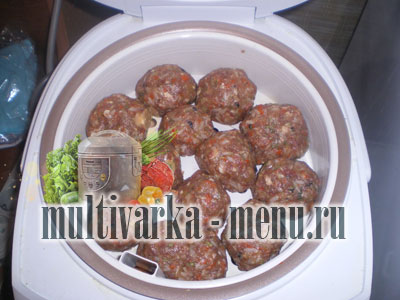 Фарш ще раз перемішати. Поставити форму для пароварки. Руками сформувати тефтелі і скласти в неї.