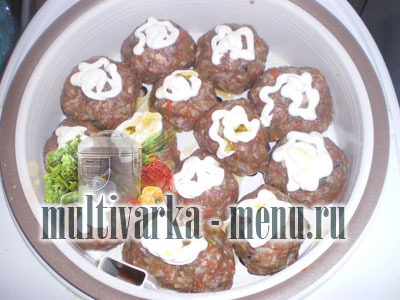 Помазати зверху тефтелі сметаною і побризкати оливковою олією. Все, пора запускати!