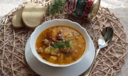 Якщо зовсім немає часу на приготування першої страви, то в такій ситуації виручать рецепти (з фото) з консервованою квасолею. Суп виходить дуже смачним, особливо якщо додати мисливські ковбаски і бекон. Така страва обов’язково сподобається всім членам сім’ї, але особливу похвалу варто чекати від чоловічої половини.