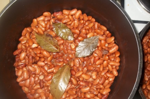 - Попередньо вимочену квасолю відварюємо до готовності разом з лавровим листом.