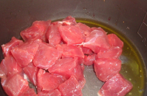 - Промиваємо м’ясо під краном і нарізаємо невеликими порційними шматочками.