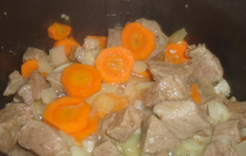 - Додаємо до яловичині овочі і обсмажуємо ще 20 хвилин, регулярно помішуючи.