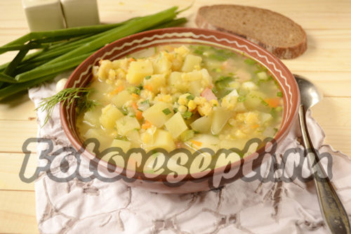 - Подаємо простий і смачний суп, заправивши сметаною і улюбленою зеленню.