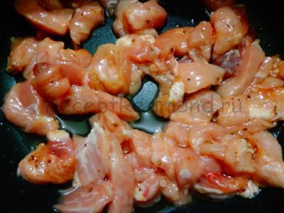 Додати сіль і перець за смаком, добре перемішати. (Якщо додати трохи води, то м’ясо вийде більш м’яким, але без рум’яної скоринки).
