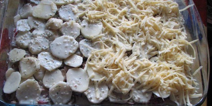 Навіть найніжніше м’ясо можна зіпсувати, пересушив філе при смаженні на сковороді. Така біда обійде вас стороною, якщо звичайної смаженої свинини ви віддасте перевагу тушковане блюдо. Просто викладіть по черзі викладіть всі інгредієнти в жароустойчивую посуд для випікання, а потім додайте до них трохи кип’яченої води. Не поспішайте пробувати рецептуру: спочатку з’ясуйте по порядку, як же готується картопля зі свининою в духовці.