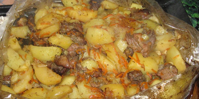 Швидко готується, тут же з’їдається – цей принцип повністю описує всю концепцію даної страви. За рахунок того, що м’ясо повністю віддає свої соки, які нікуди не випаровуються, картоплю в рукаві виходить особливо ніжним, соковитим, ароматним. Щоб переконатися в цьому, навчитеся готувати свинину з картоплею самі, дотримуючись докладним інструкцій з рецепту.