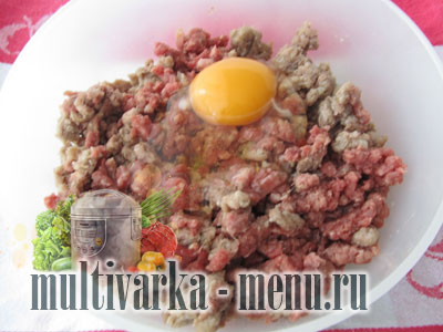 У м’ясний напівфабрикат розіб’ю яйце, посолю та поперчу за смаком.