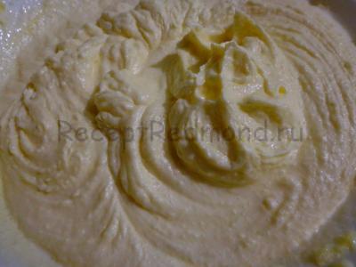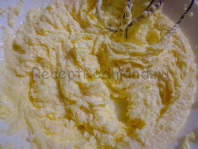 Як приготувати тісто? Вершкове масло (180 г) за допомогою міксера змішати зі сметаною і цукром.