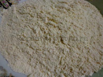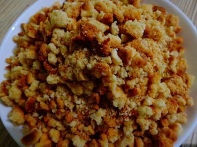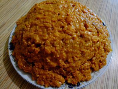 Таким же чином спекти другий корж. Після того як всі печеньки готові і охололи, подрібнити їх за допомогою дерев’яної товкачика.