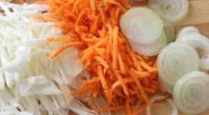 • Після цього візьміть моркву і цибулю і наріжте їх кубиками або просто крупно.