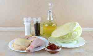 Крім перерахованих вище інгредієнтів, вам потрібно 300-400 грам м’яса. Якщо ви готуєте капусту на вечерю, то перевагу варто віддавати нежирним сортам, а ще краще вибрати курячу грудку.