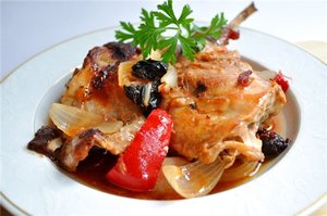 Слід зазначити, що страва тушкованого кролика виходить відмінним не лише, якщо використовувати вино в якості маринаду. Алкоголь можна додати у процесі тушкування м’яса в духовці. При цьому готовий продукт встигне насититися ароматами винного напою і придбає особливий пікантний смак. Приготований за французькою рецептурою кролик в червоному вині стане ідеальним блюдом святкового столу. Для цього необхідні наступні інгредієнти: