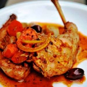 Безперечно, найпопулярнішим з усіх страв, в яких фігурує м’ясо кролика, вважається кролик, тушкований у вині. Численні рецепти таких страв мають загальну основу — м’ясо необхідно замариновывать в червоному або білому вині. Саме від маринаду залежить смак кінцевого продукту.