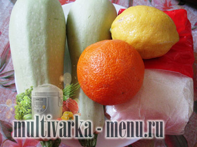 Інгредієнти для страви «Варення з кабачків в мультиварці з лимоном і апельсином»: