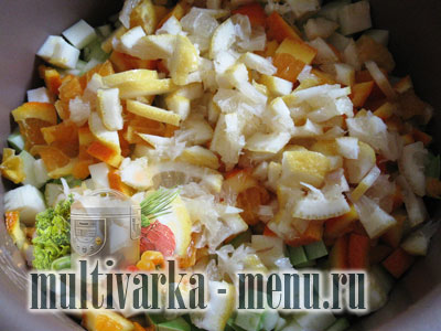 Все перемішуємо. Включаємо мультиварку на режим «Гасіння», час приготування – 2 години.