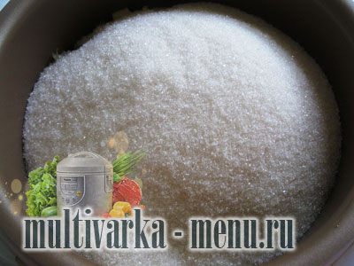 Тепер розливаємо його в пропарені банки. Їх можна пропарити з допомогою тієї ж мультиварки, на пару поставити банки і вони швидко простерилизуются разом з кришками.