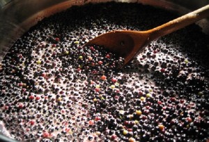 Отриманий сік потрібно помістити в тару, бажано щоб вона була емальованому. В ній пройде процес первинного бродіння. Далі настане друга стадія – бурхливе бродіння, яка відокремить мезгу від соку. Через 3 дні верхній макуха потрібно відокремити від рідини. Зробити це можна за допомогою друшляка. Чистий сік зливають в мірну ємність, що дозволить визначити потрібну кількість цукру: на 1л додається 200 р. Далі все ретельно перемішується до повного розчинення цукру, вливається вода і вводяться дріжджі.