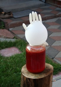Отже, на банку в якості гідрозатвори знаходиться рукавичка, значить настав час подбати про температурному режимі для початку бродіння. Оптимальною є 22 °C. Температура нижче 10 °C зупинить бродіння.