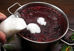 Цукристість в заготовці не повинна перевищувати п’ятнадцяти — двадцяти відсотків. Більш високі показники зіпсують процес бродіння. Тому цукор слід вносити поступово. Кожні два дні перевіряйте смак соку. Коли він стає кислуватим, це означає, що попередня порція цукру вже переробилась і прийшов час внести нову. На кожен літр соку приходиться п’ятдесят грам цукру. В окрему посудину відлийте один-два літри заготовки, всипте цукор і добре розмішайте. Отриманий сироп влийте назад у ємність.