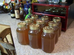 По закінченні процесу, самогон розбавляється водою до необхідної фортеці і розливається в пляшки. Для того щоб пом’якшити смак самогону, зробити його більш темним колір, на кожну трилітрову банку додаються кілька кубиків паленого цукру. Крім цукру, можна додати стружку дубової кори і спеції. Після того як самогон настоїться, він проціджують і розливають в пляшки, після чого готовий до вживання.