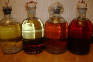Одним з головних принципів, що застосовуються для додання самогону особливих смакових якостей і кольору, є наполягання на різних травах, прянощах, частинах рослин (коріння, плоди і т. д.). Наприклад,