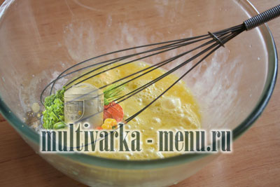 До збитим яйцям додамо кисле молоко або, як у нашому випадку – пахту. Все ще раз гарненько змішаємо.