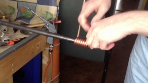 На практиці процес виготовлення виглядає наступним чином. Береться трубка з міді товщиною 1-2 мм, діаметром близько 10 мм, довжиною приблизно 150 див. з однією З сторін забивається чопик з дерева. Потім трубка повністю набивається дрібним піском. Це потрібно, щоб уникнути розплющення міді на тому чи іншому ділянці. Потім слід знайти круглий довгастий предмет потрібного для вас діаметра і затиснути його в лещата. Навколо нього як оправа намотується змійовик з міді. Все готово!