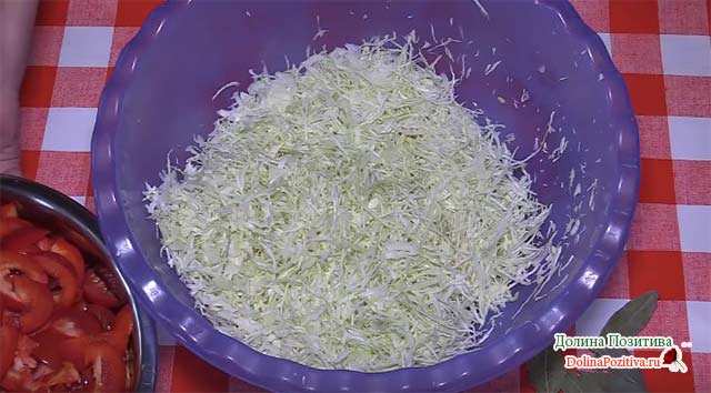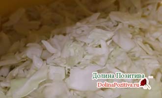 Качан тонко пошинкуйте. Трохи посоліть і обімніть руками. Подрібнений овоч має дати сік.