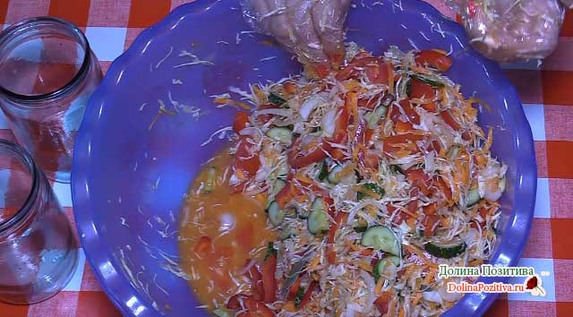 Хрусткий салат на зиму з капусти і огірків
