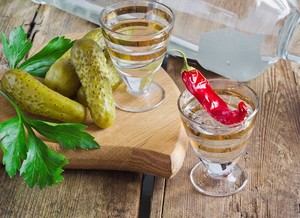 - Вкоренилося твердження, то найкраща закуска для горілки – малосольный огірок. Однак безпечніше заїдати напій гарячим блюдом, так як така суміш здатне впливати на мозок якимсь ейфоричним ефектом. Овочі ж розріджують этиловое речовина, що тягне за собою втрату координації.