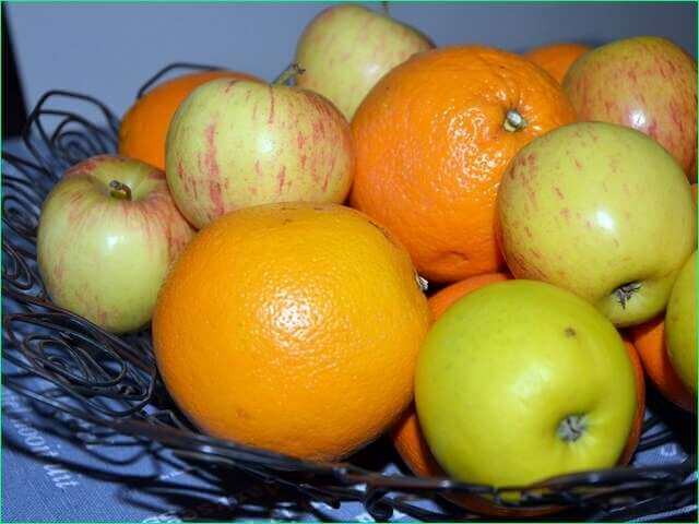 Беремо стиглі яблука. Очищаємо їх від шкірки і серцевини. Ріжемо кубиками. Апельсини повинні бути помаранчеві без дефектів. Зрізаємо шкірку. Кожну часточку розрізаємо на 2-3 частини.